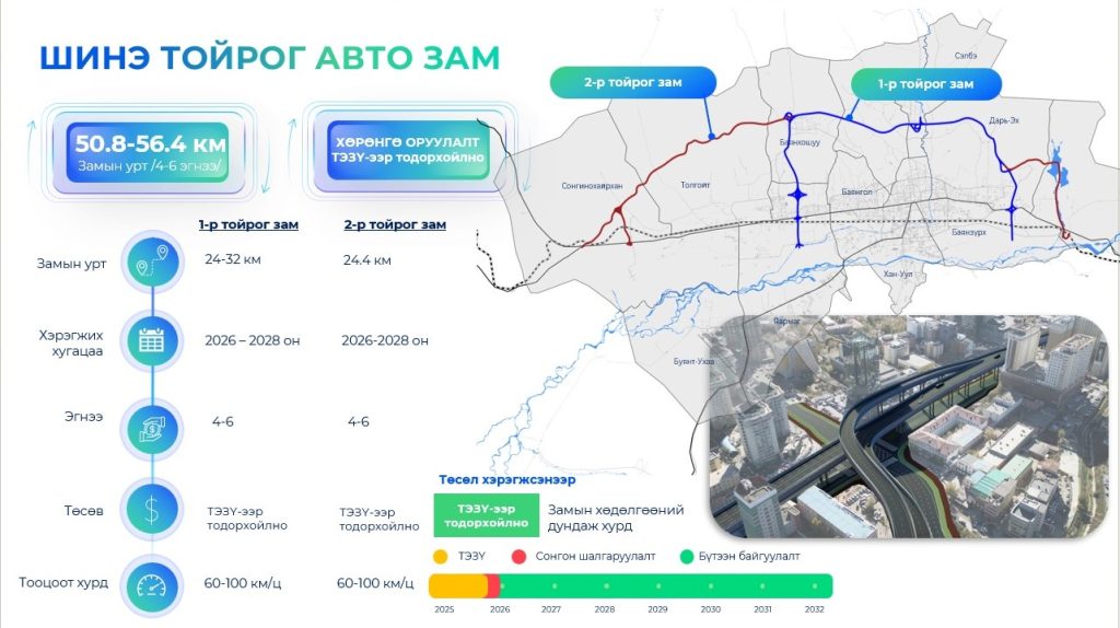 Улаанбаатар хотын 2025-2028 оны хооронд хэрэгжүүлэх 24 мега төслийн хүрээнд Шинэ тойрог авто замын урьдчилсан ТЭЗҮ-ийг боловсруулж байна. Урьдчилсан байдлаар дөрвөөс зургаан эгнээ бүхий 50 гаруй км урт үргэлжлэх Шинэ
