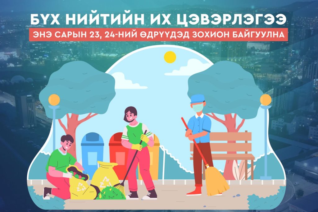 Энэ сарын 23, 24-ний өдрүүдэд бүх нийтийн их цэвэрлэгээг зохион байгуулна